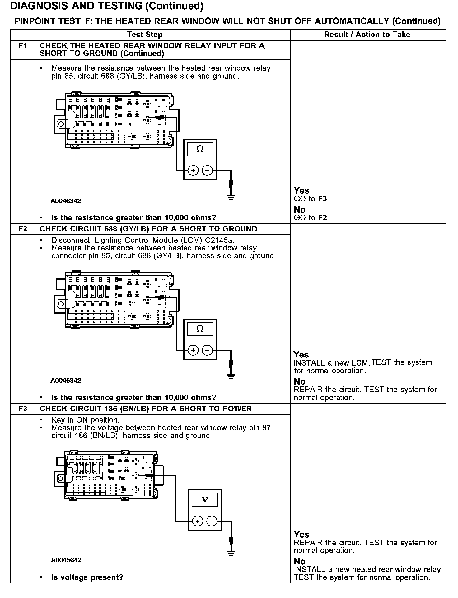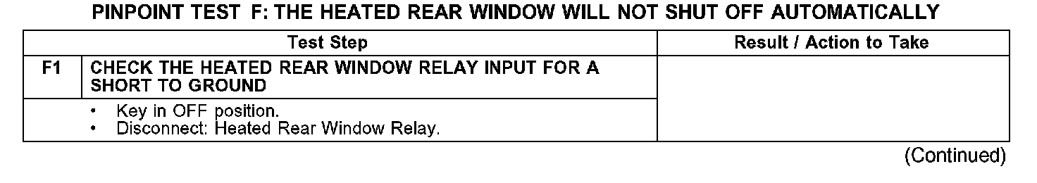 PINPOINT TEST F: THE HEATED REAR WINDOW WILL NOT SHUT OFF AUTOMATICALLY
