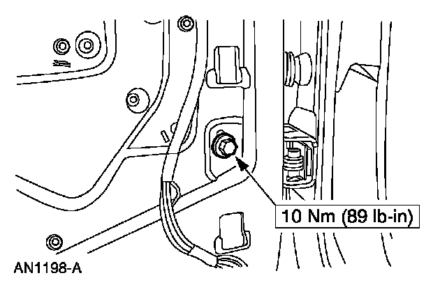 11. Inspect the window regulator stud location in slots on door inner sheet metal panel and make sure the regulator studs are located at the center of the slots.