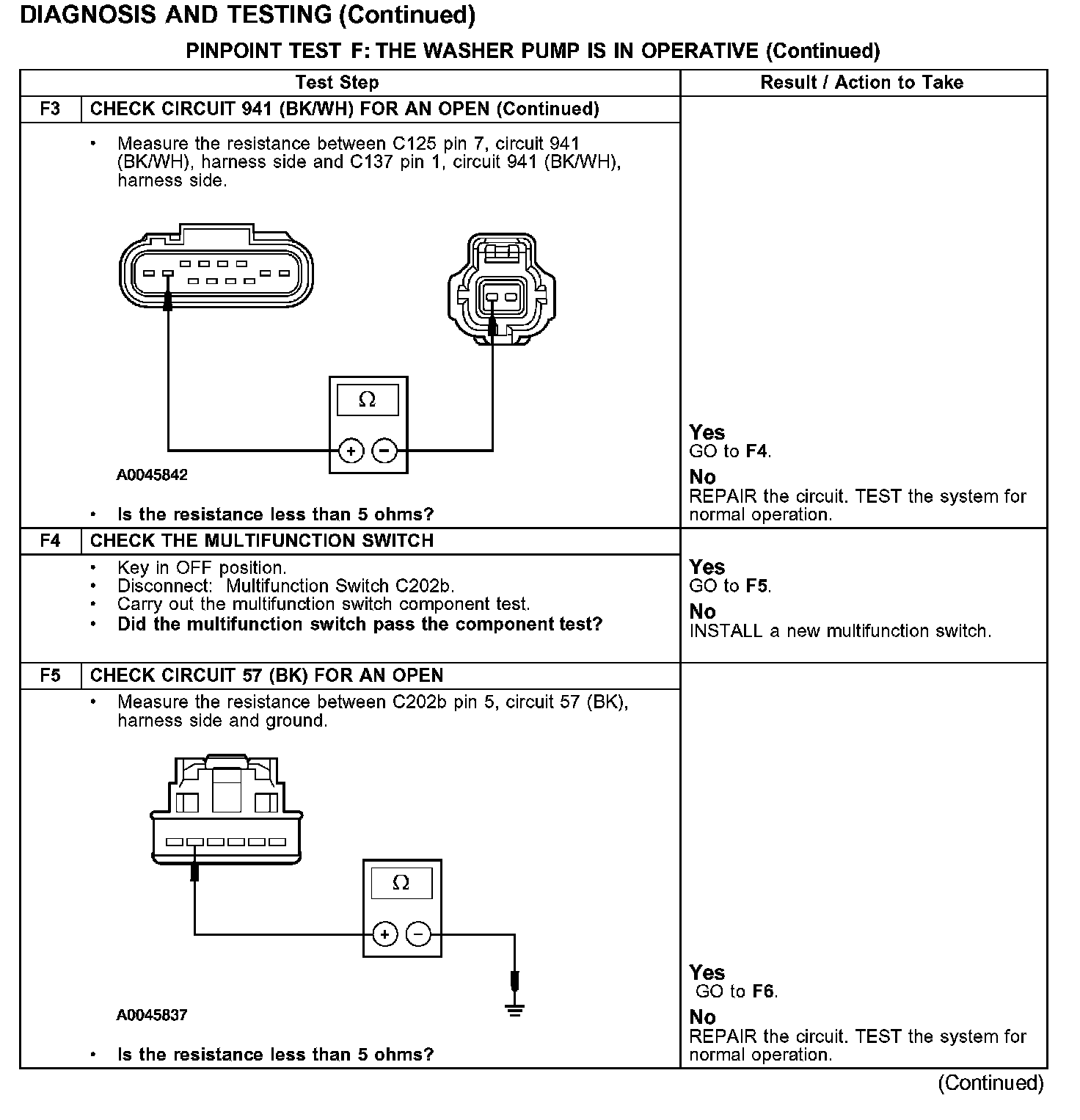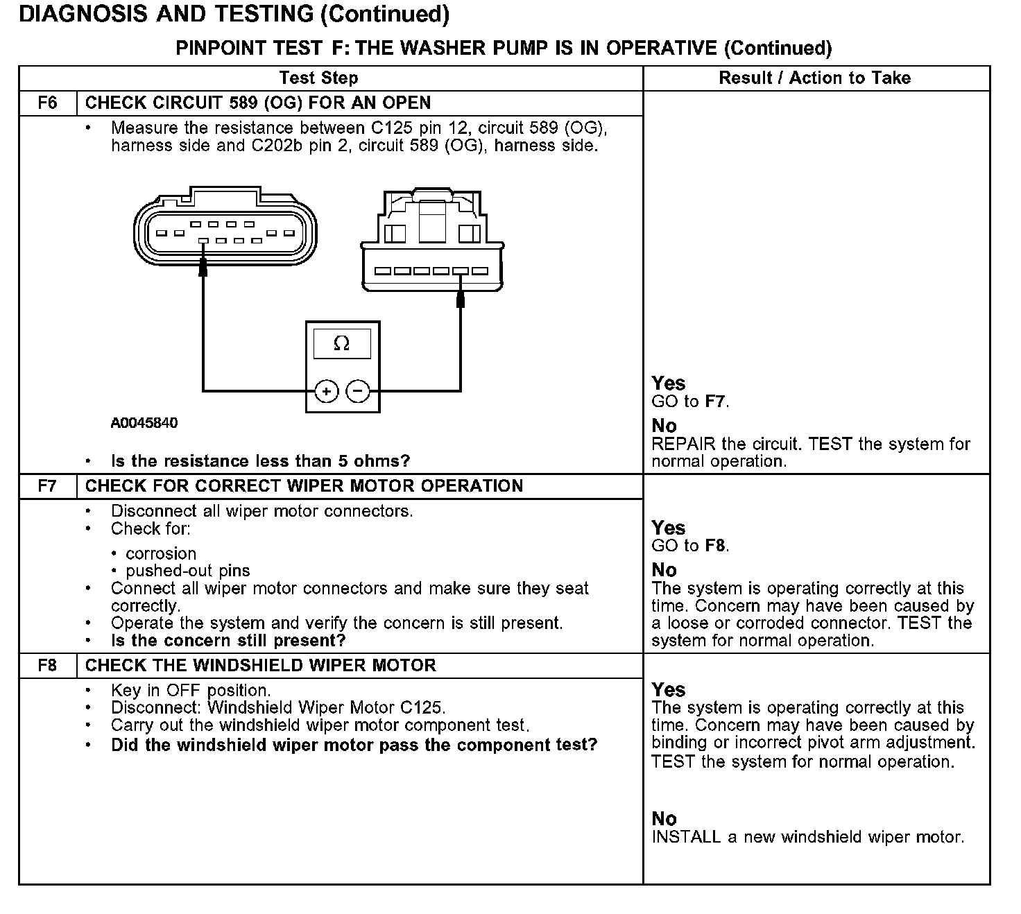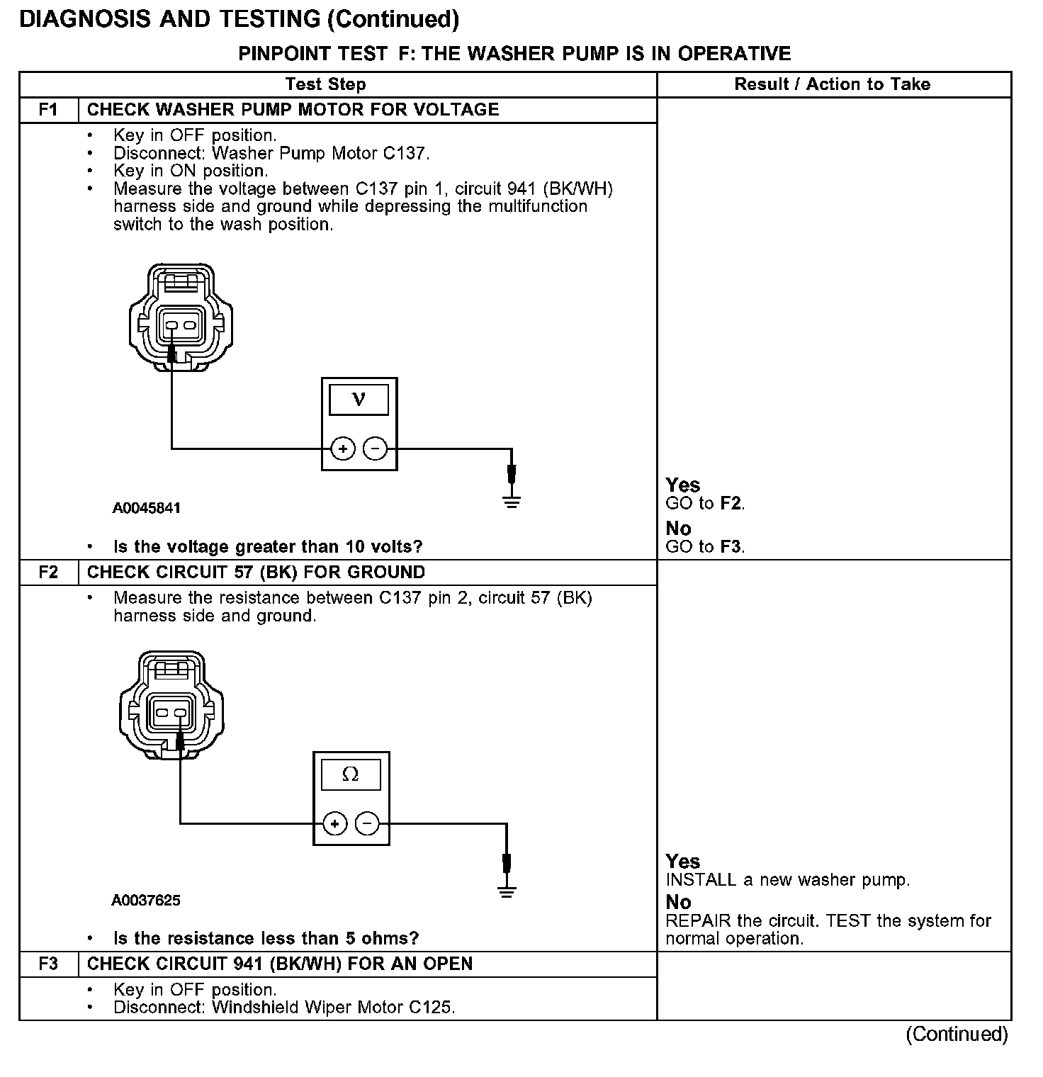 PINPOINT TEST F: THE WASHER PUMP IS IN OPERATIVE