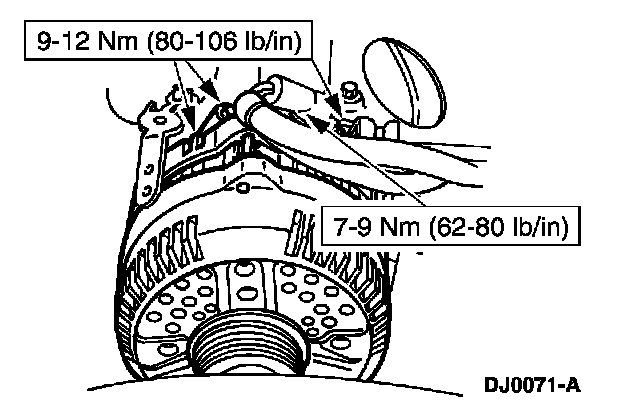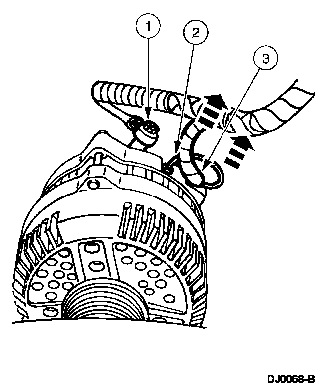 1 Remove the B+ terminal nut and disconnect the terminal.