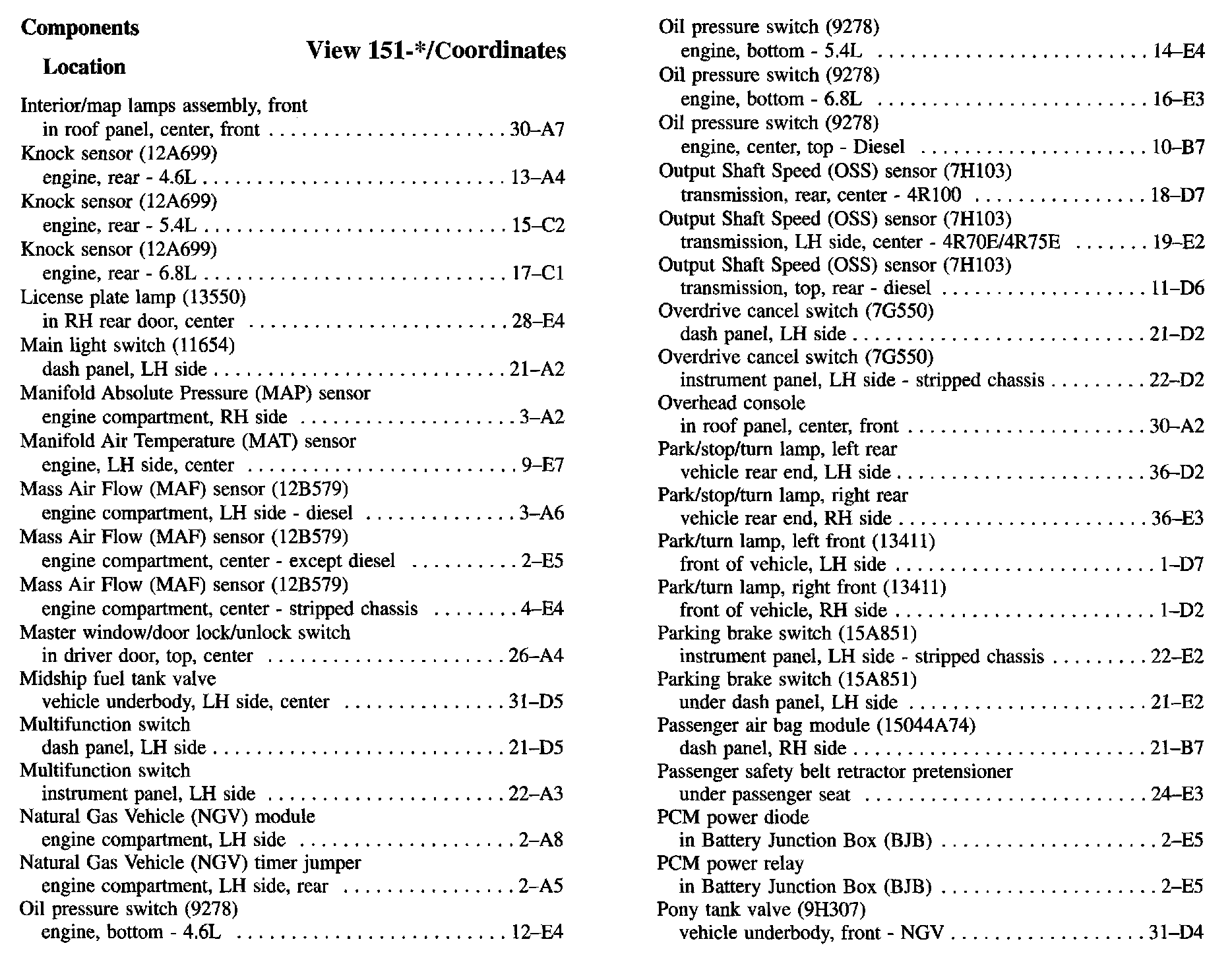 PLEASE NOTE: If a link on the Component Location Index to a View is not provided, that means that the Component and/or View in question does NOT apply to the vehicle model selected.