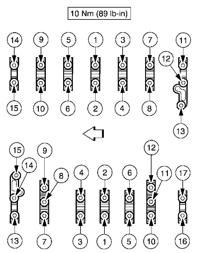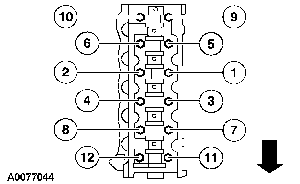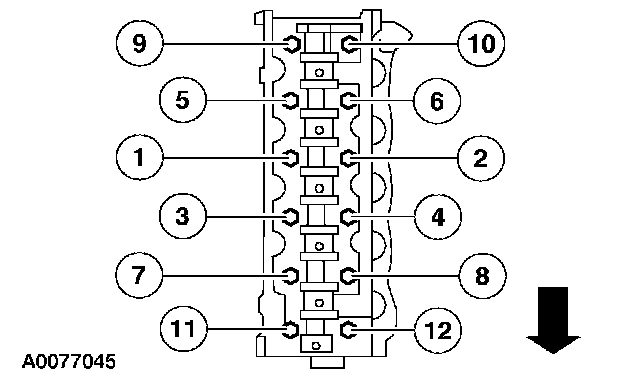 Tighten the cylinder head bolts in three stages in the sequence shown.