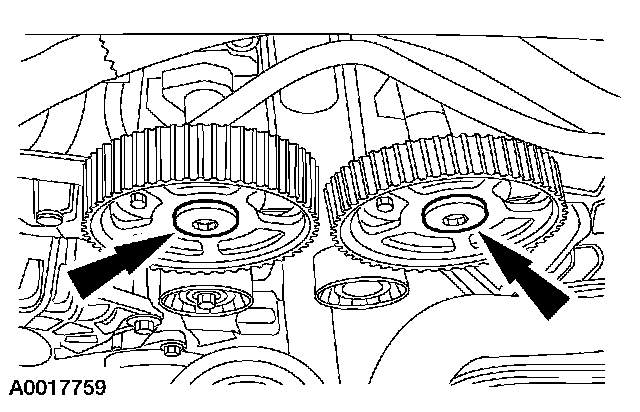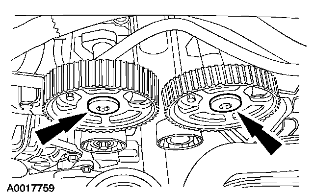 1. Install the camshaft sprockets onto the camshafts and loosely install the bolts.