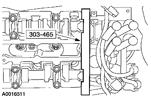 3. CAUTION: The camshaft alignment tool is not recommended to hold the camshafts in place when removing or tightening the bolts. Damage to camshaft may result.
