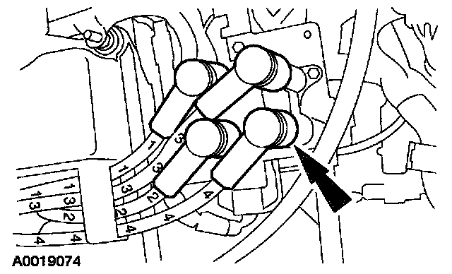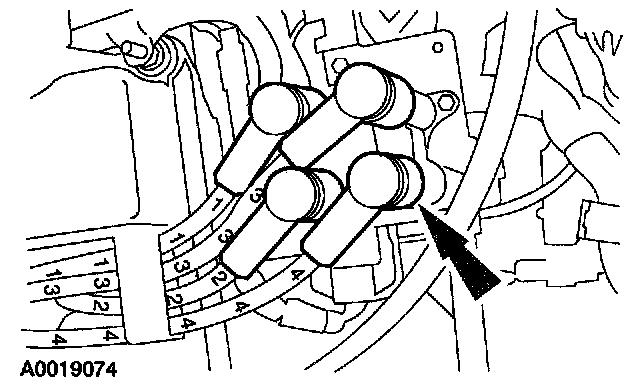 1. CAUTION: Correct installation of the ignition wires is critical to engine operation. If one spark plug wire is not correctly installed at either the spark plug or the ignition coil, both spark plugs connected to the ignition coil may not fire under load.