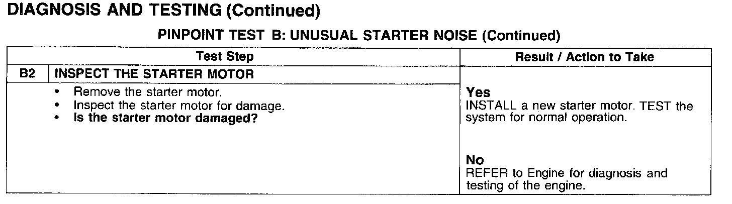 PINPOINT TEST B: UNUSUAL STARTER NOISE