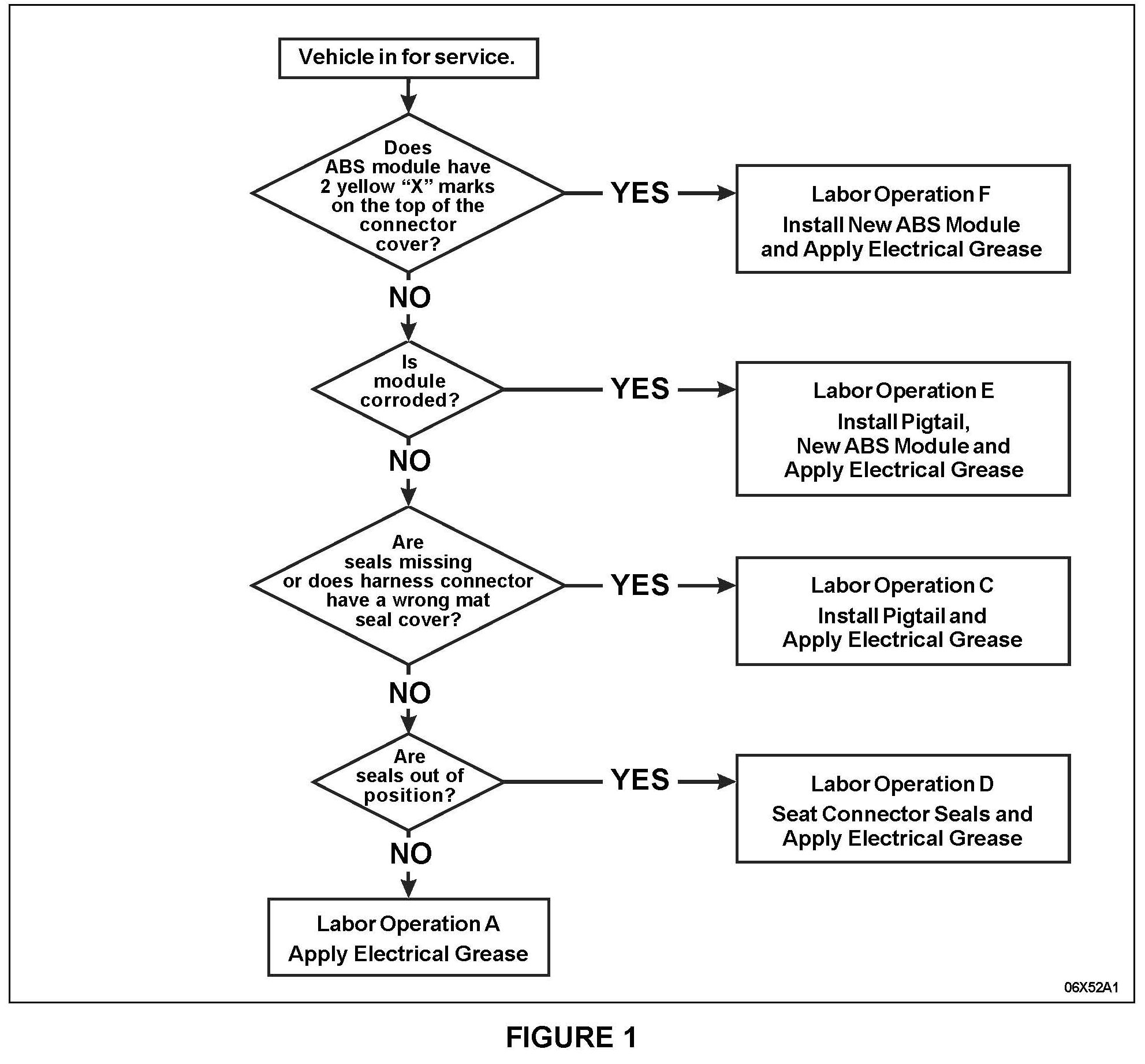 ^ If 2 yellow "X" marks are present, perform Labor Operation F - Install New ABS Module and Apply Electrical Grease.