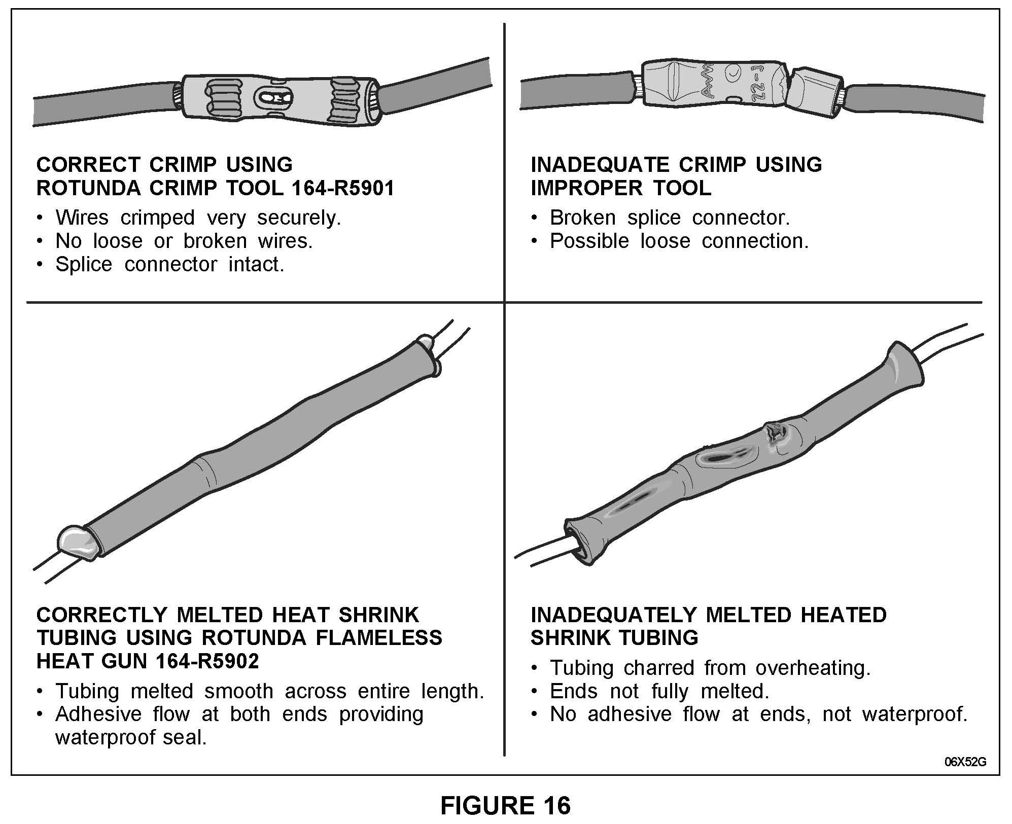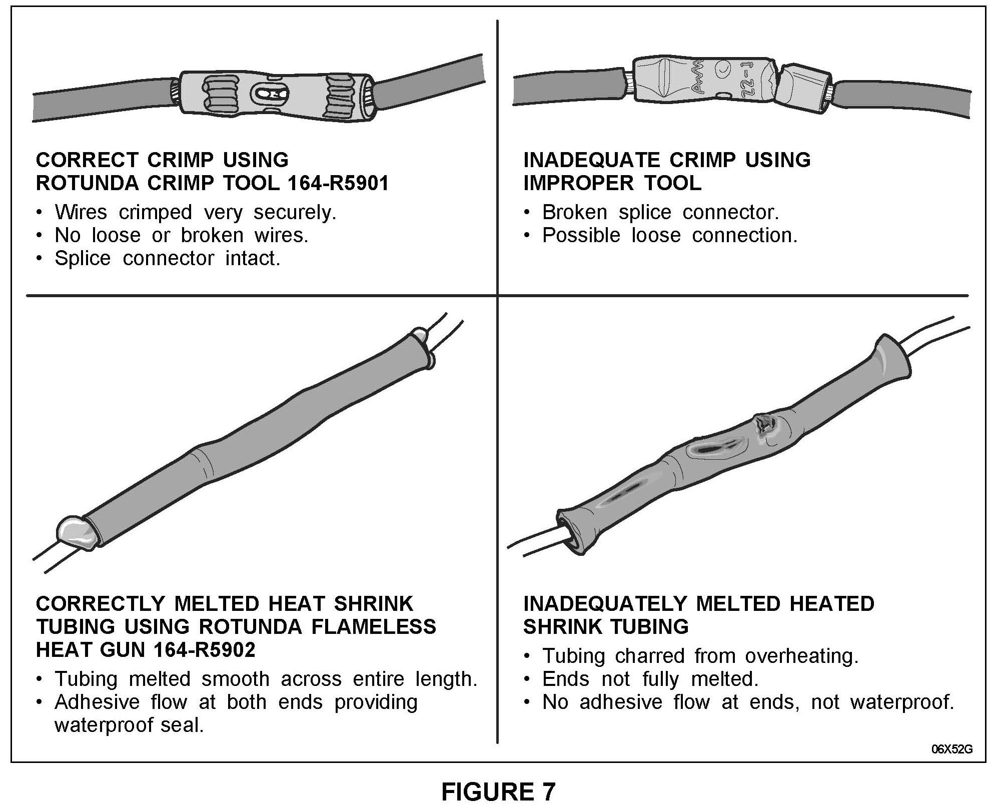 When performing the service pigtail installation, it is critical that the crimp tool and the flameless heat gun found in the Rotunda Wire Splice Tool Kit / 64-R5903 be used.