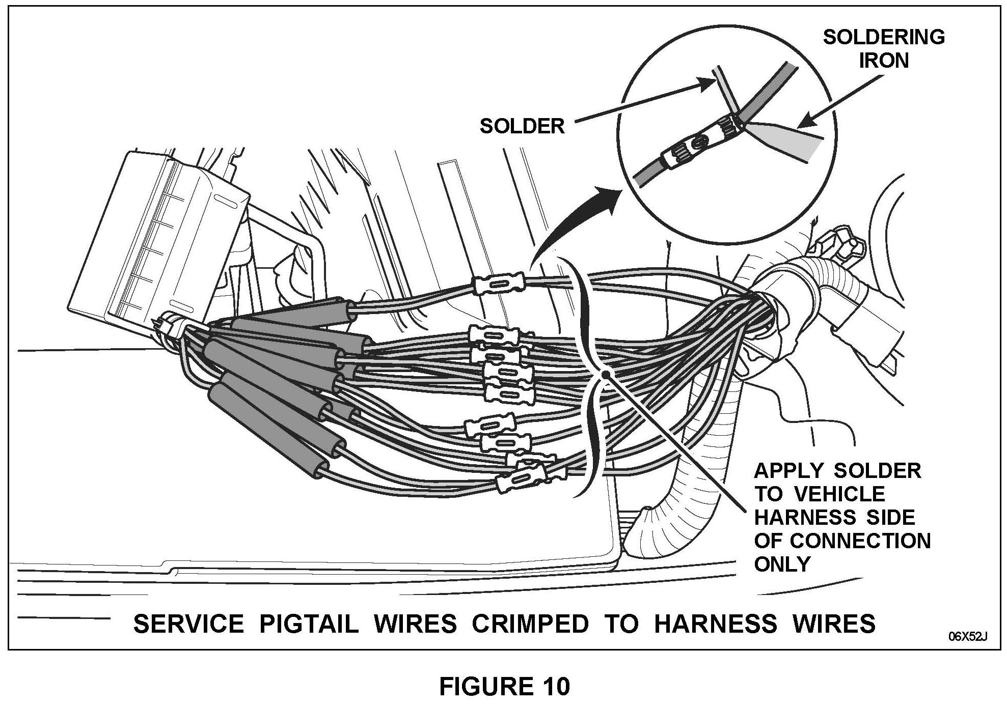 3. Strip approximately 6 mm (1/2 in) of insulation from each of the cut wires in the harness. See Figure 9.