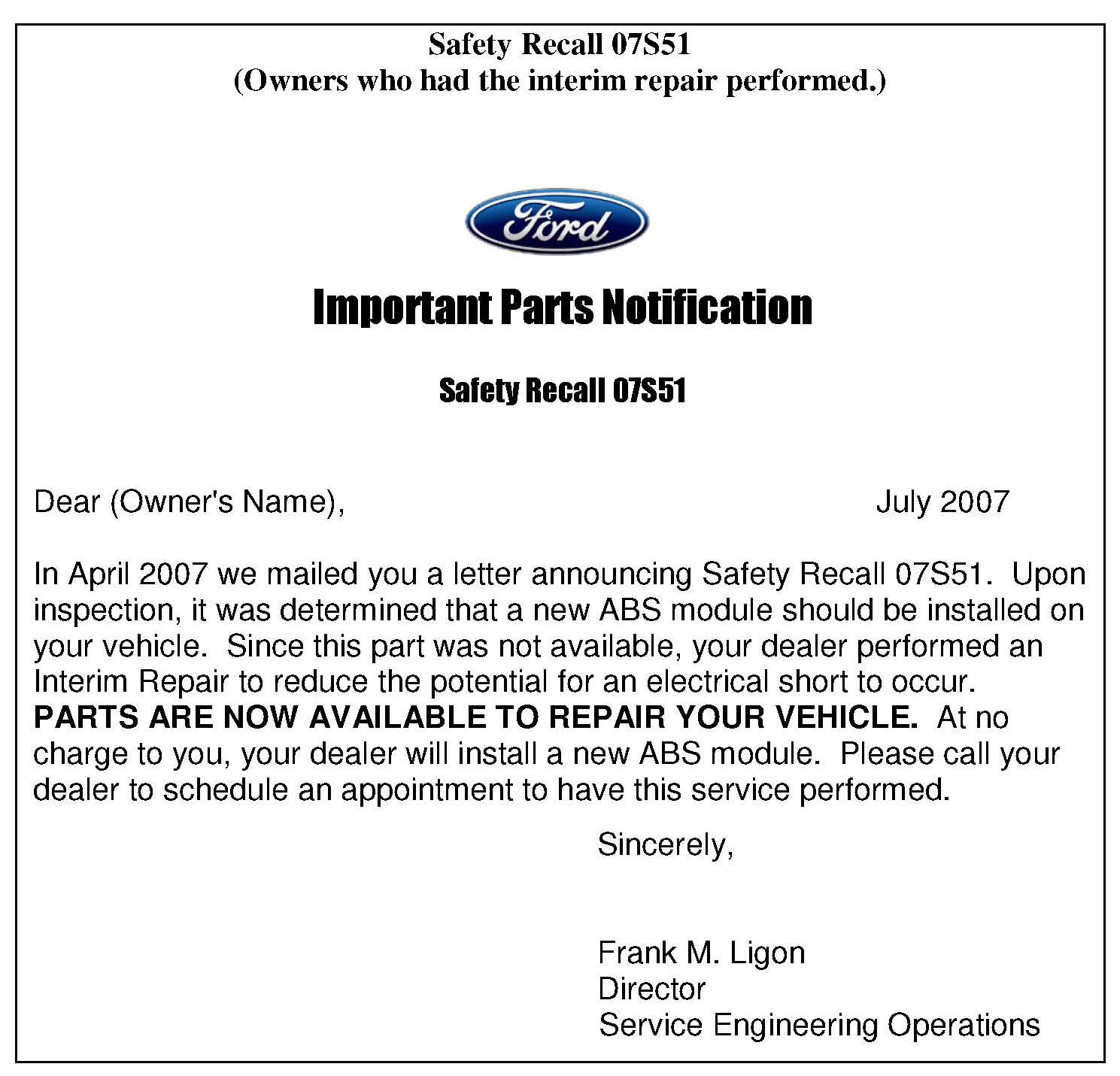 Recall - ABS Module Connector Inspection/Repair