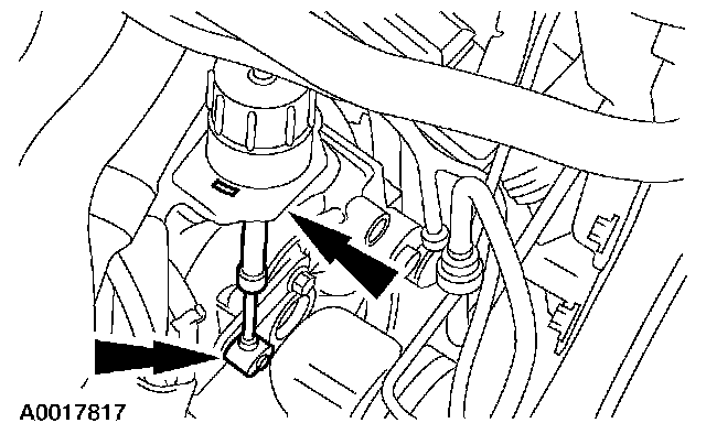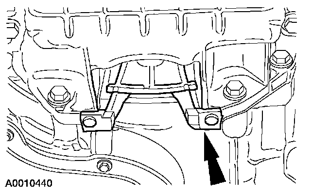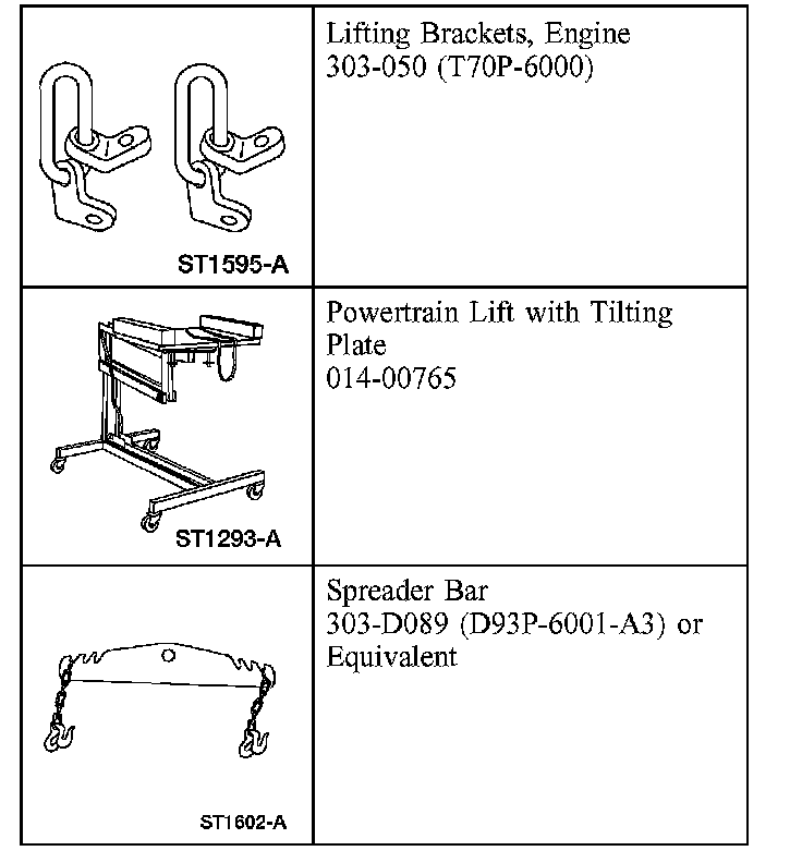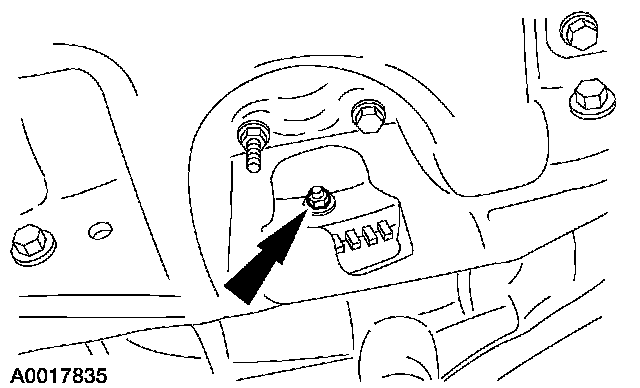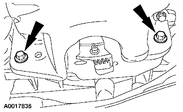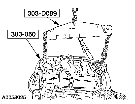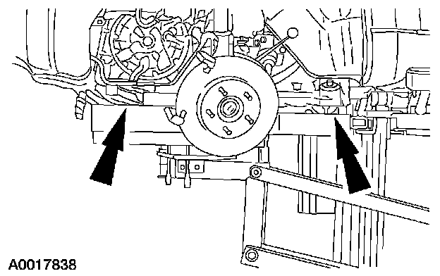 NOTE: The next seven steps must be carried out with the vehicle raised and the universal powertrain lift in position.