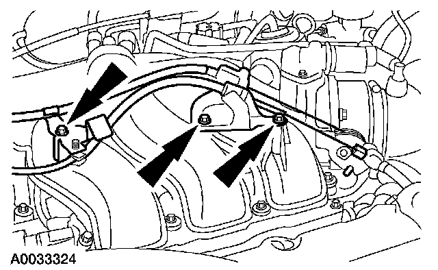 11. Disconnect the accelerator cable and, if equipped, the speed control actuator cable.