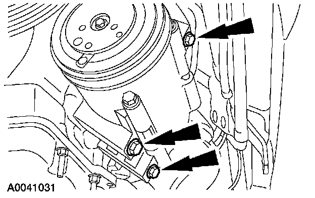 33. Remove the bolts and the A/C compressor.
