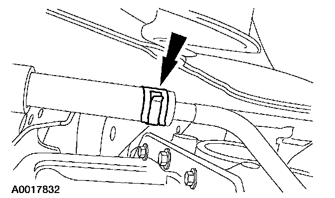 16. Remove the tie-strap and disconnect the heater hose.