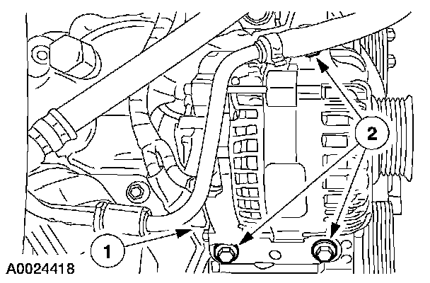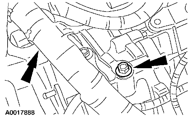 Remove the A/C manifold and tube assembly bolt from the top of the A/C compressor and disconnect the A/C manifold and tube assembly.