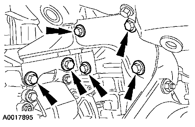 69. Remove the six transaxle bolts.