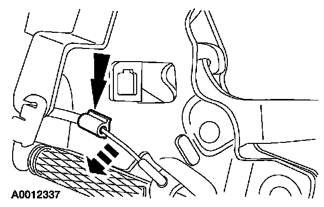 5. Remove the seat backrest cable retaining clip and the cable.
