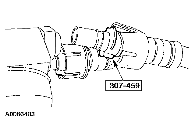4. Using the special tool, disconnect the fluid cooler tubes from the remote mount transmission fluid filter housing.