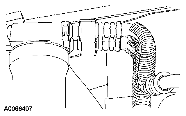 3 Remove the constant tension clamp from the auxiliary cooler outlet and disconnect the hose.