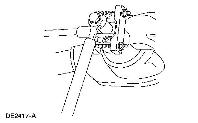1. Raise the vehicle on a hoist or raise the rear end of the vehicle with a Jack. Install safety stands under the frame rails and lower the Jack or hoist far enough to allow the rear axle to drop into the rebound position for working clearance.
