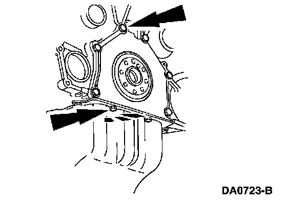 5. Remove the bolts and the crankshaft rear seal retainer plate.