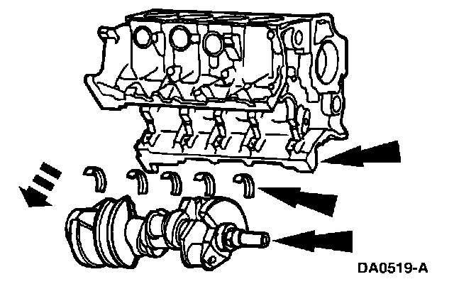 67. Remove the crankshaft, the upper crankshaft main bearings and the upper thrust washers from the cylinder block.