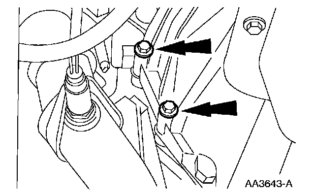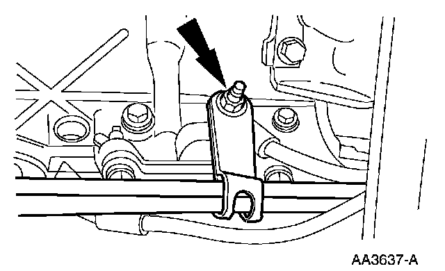 22. Remove the nuts and position the transmission oil cooler lines and bracket aside.