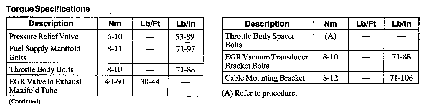 Torque Specifications: