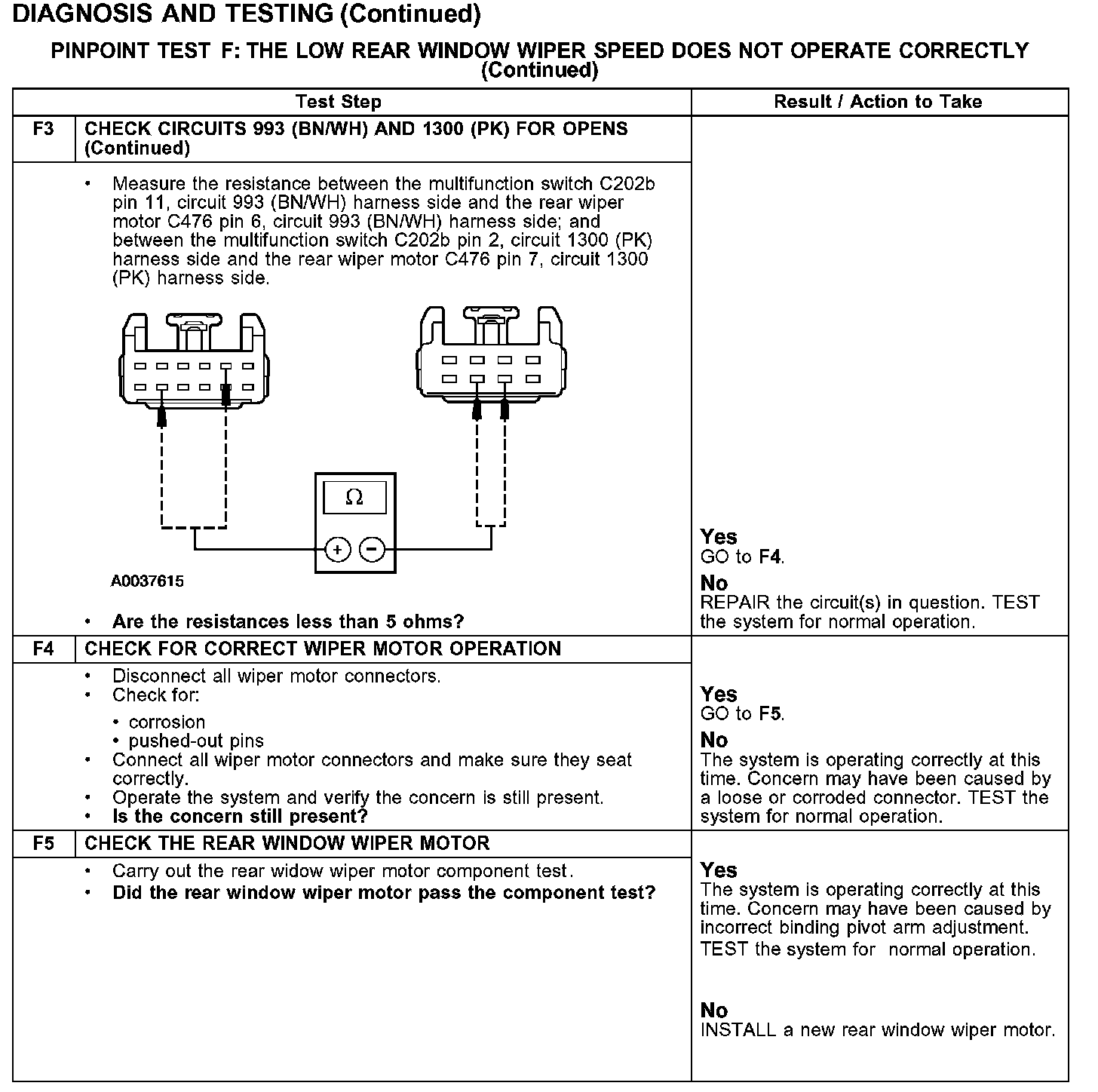 PINPOINT TEST F: THE LOW REAR WINDOW WIPER SPEED DOES NOT OPERATE CORRECTLY