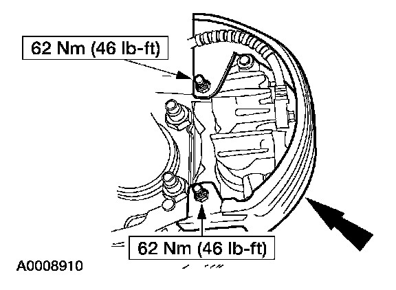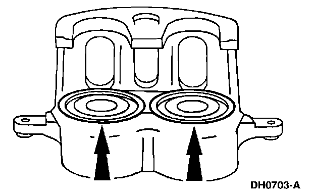 CAUTION: Protect the piston and boots when pushing the caliper piston into the caliper piston bores.