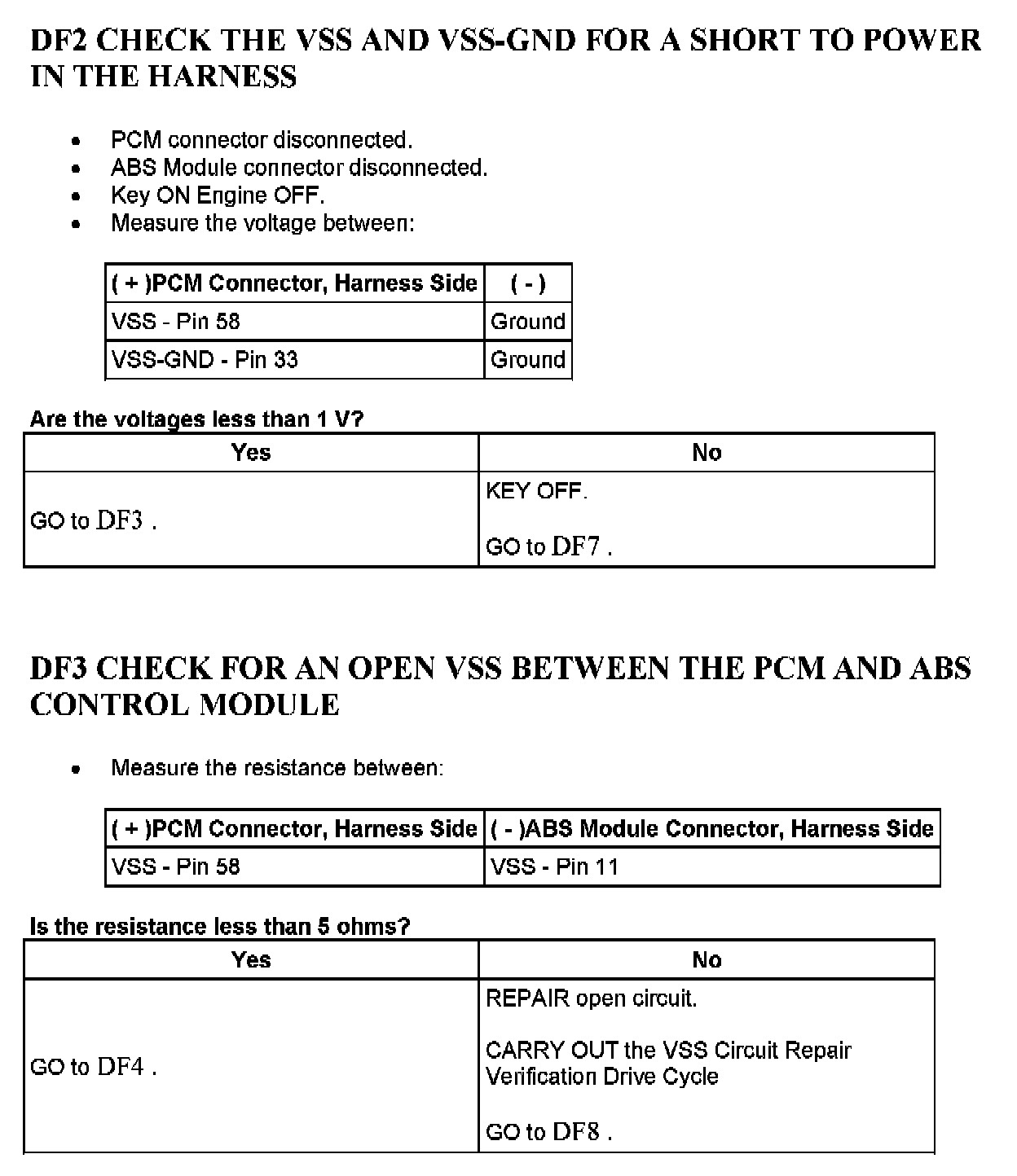 PINPOINT TEST DF: VEHICLE SPEED CIRCUIT CHECK