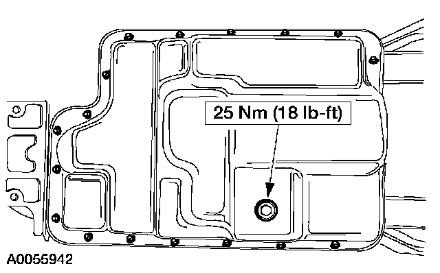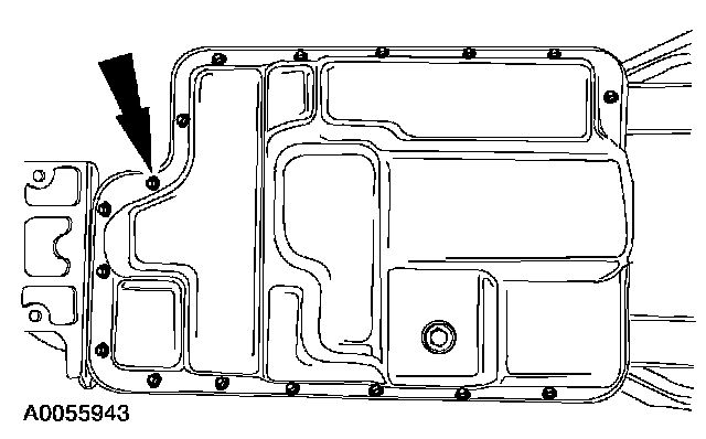 2. NOTE: Tighten all the transmission fluid pan bolts in a crisscross pattern.