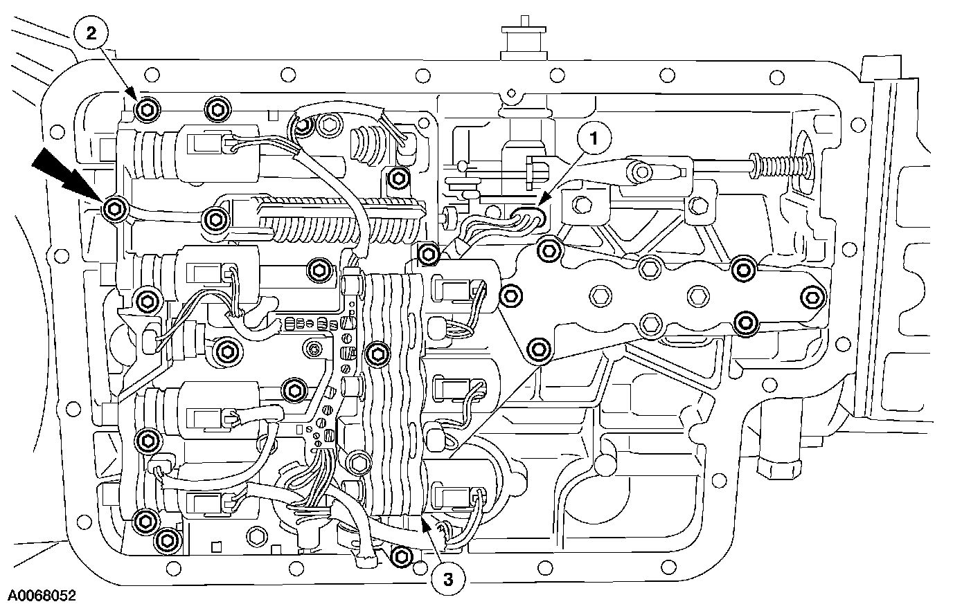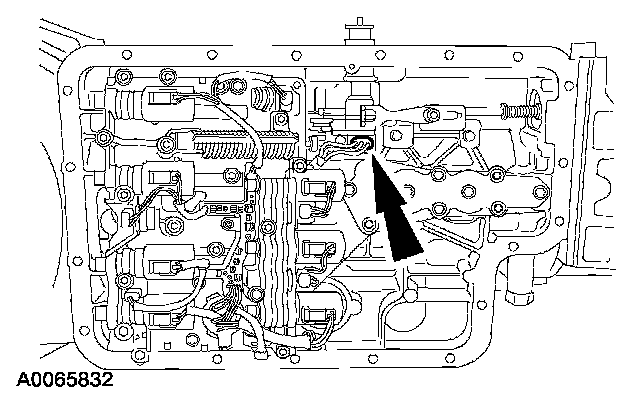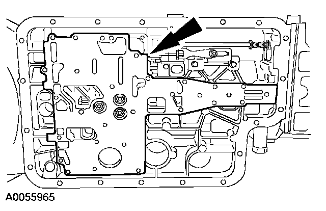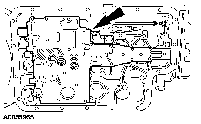 1 NOTE: While lowering the solenoid body, the manual valve may fall out of the solenoid body.