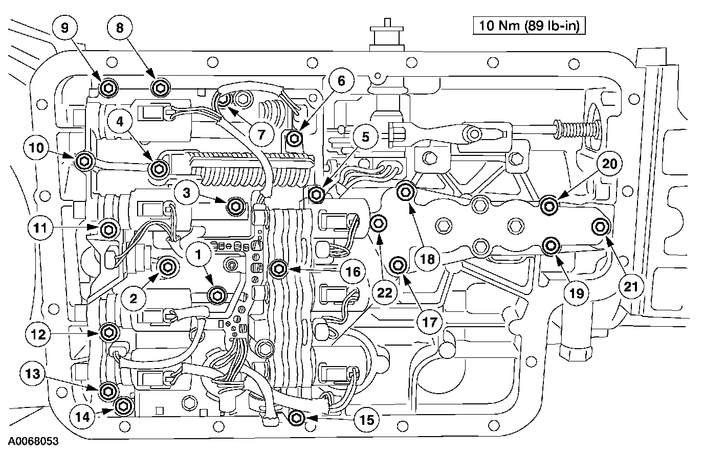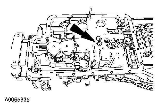 3. NOTE: While lowering the solenoid body, the forward clutch orifice may fall out of the transmission case.
