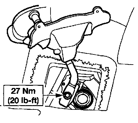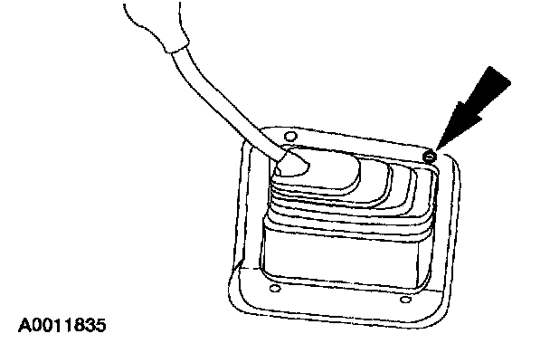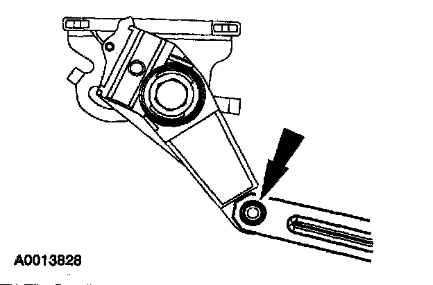 1 For vehicles with a gasoline engine and manual transmission, or a diesel engine and manual or automatic transmission, install the new bolt in the forward (LH) threaded hole in the transmission case.