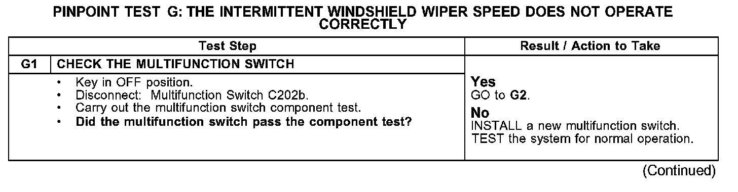 PINPOINT TEST G: THE INTERMITTENT WINDSHIELD WIPER SPEED DOES NOT OPERATE CORRECTLY