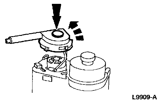 - Push in the locking arm on the speed control actuator cable cap and rotate the cap counterclockwise.
