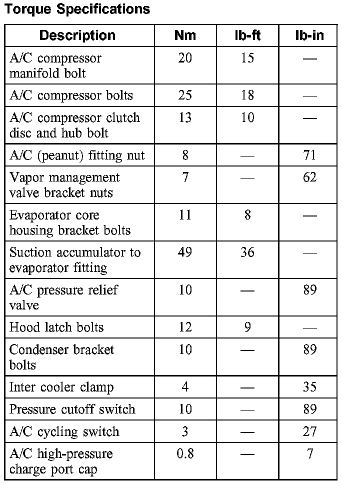 Torque Specifications: