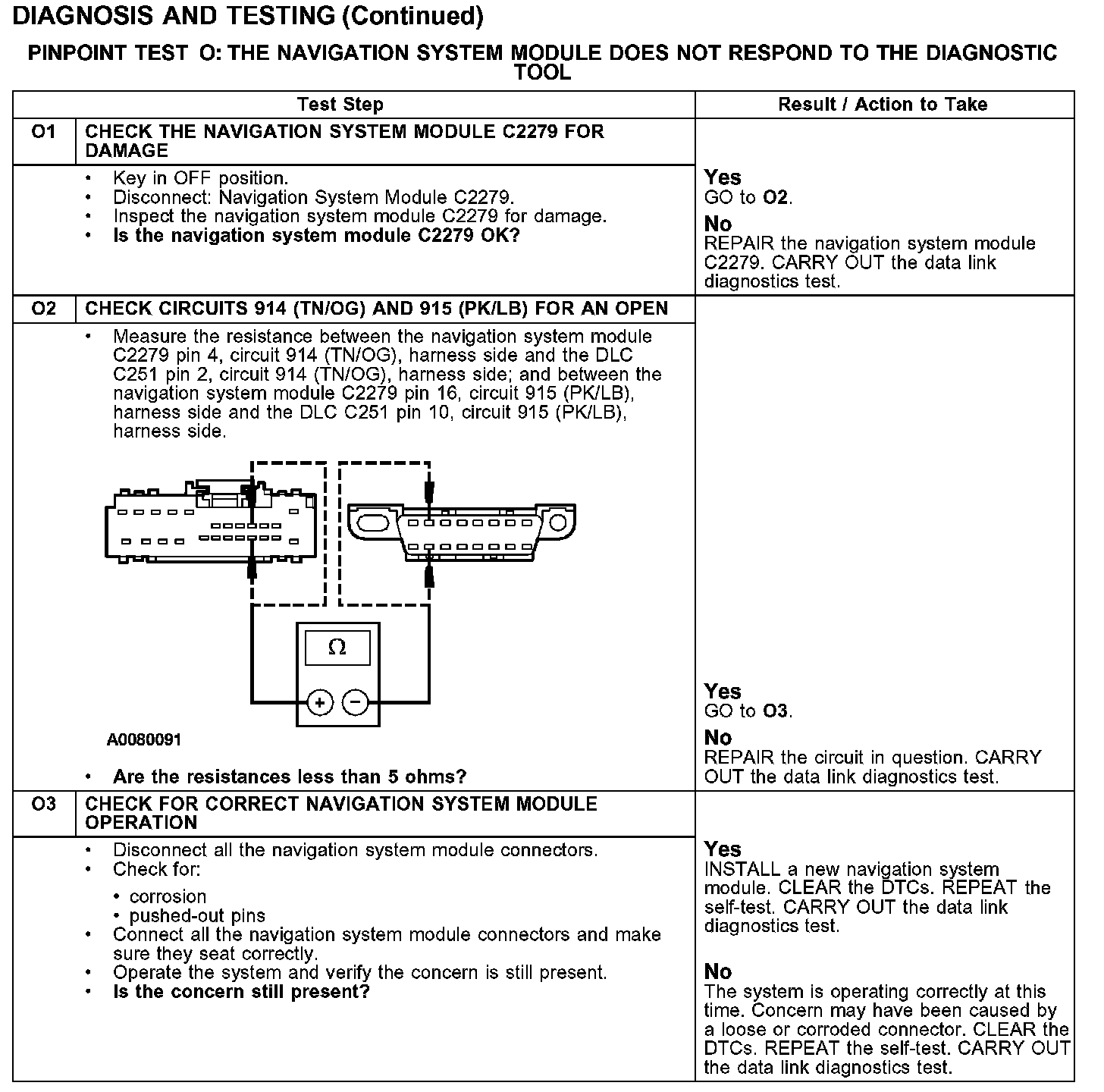 PINPOINT TEST O: THE NAVIGATION SYSTEM MODULE DOES NOT RESPOND TO THE DIAGNOSTIC TOOL
