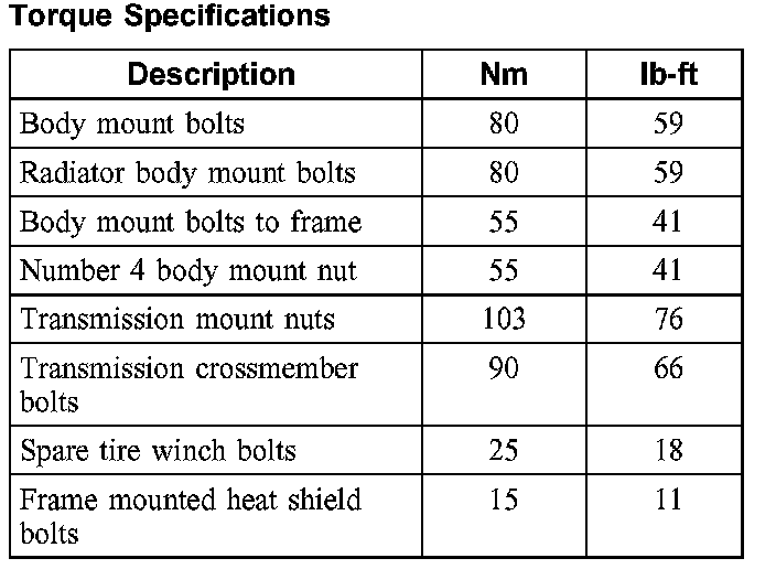 Torque Specifications: