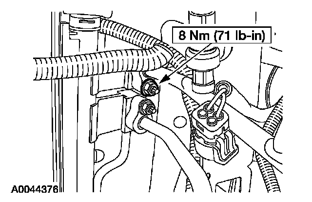 5. Remove the nut and disconnect the A/C fitting.