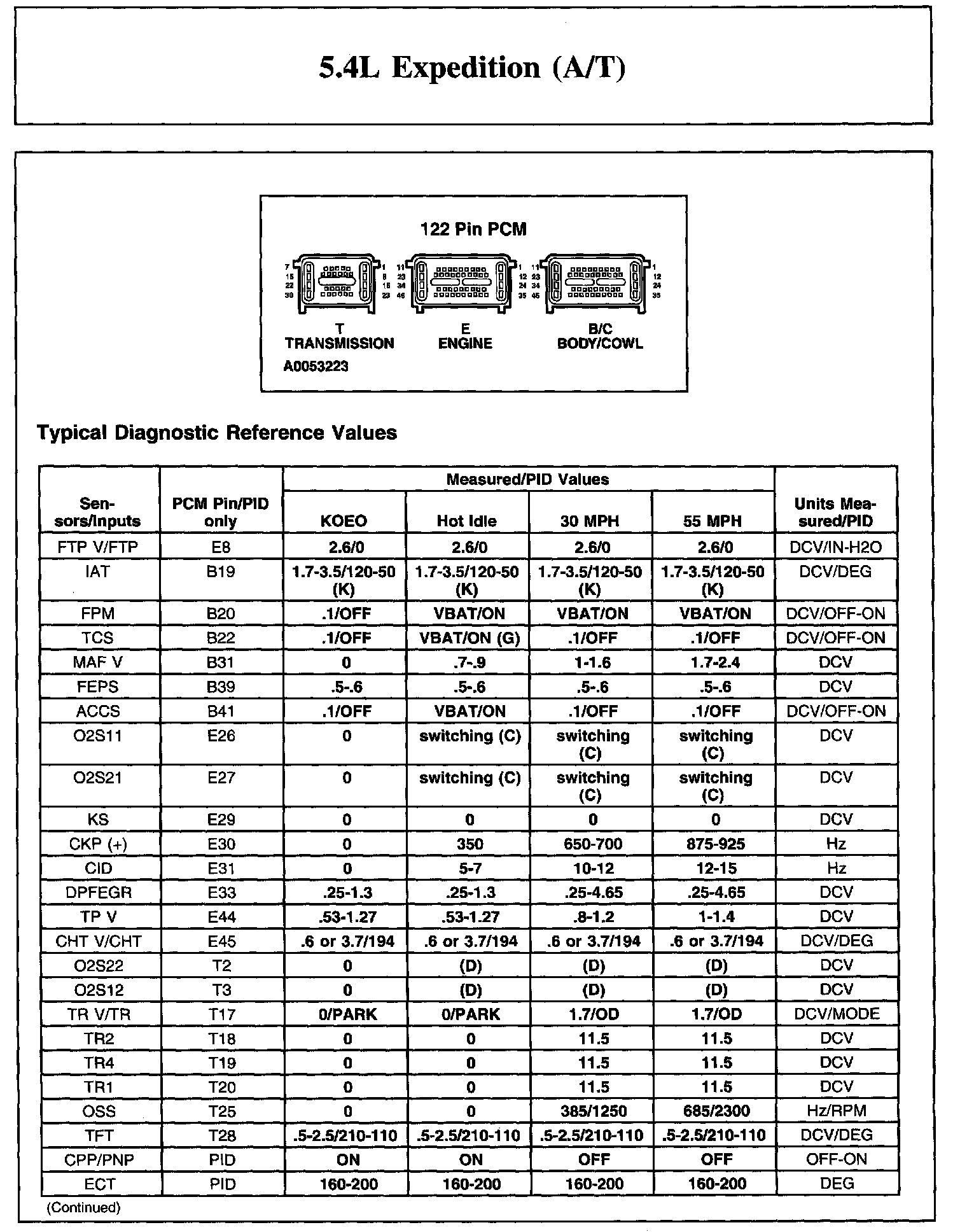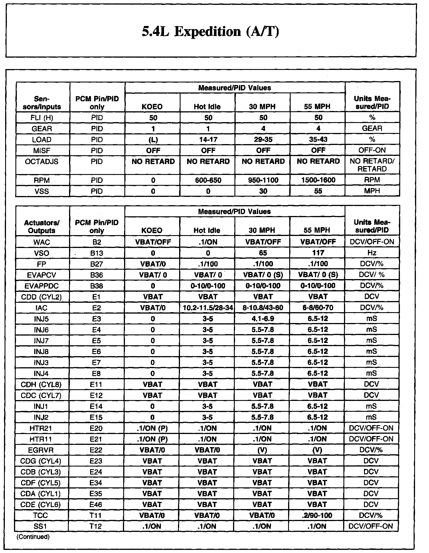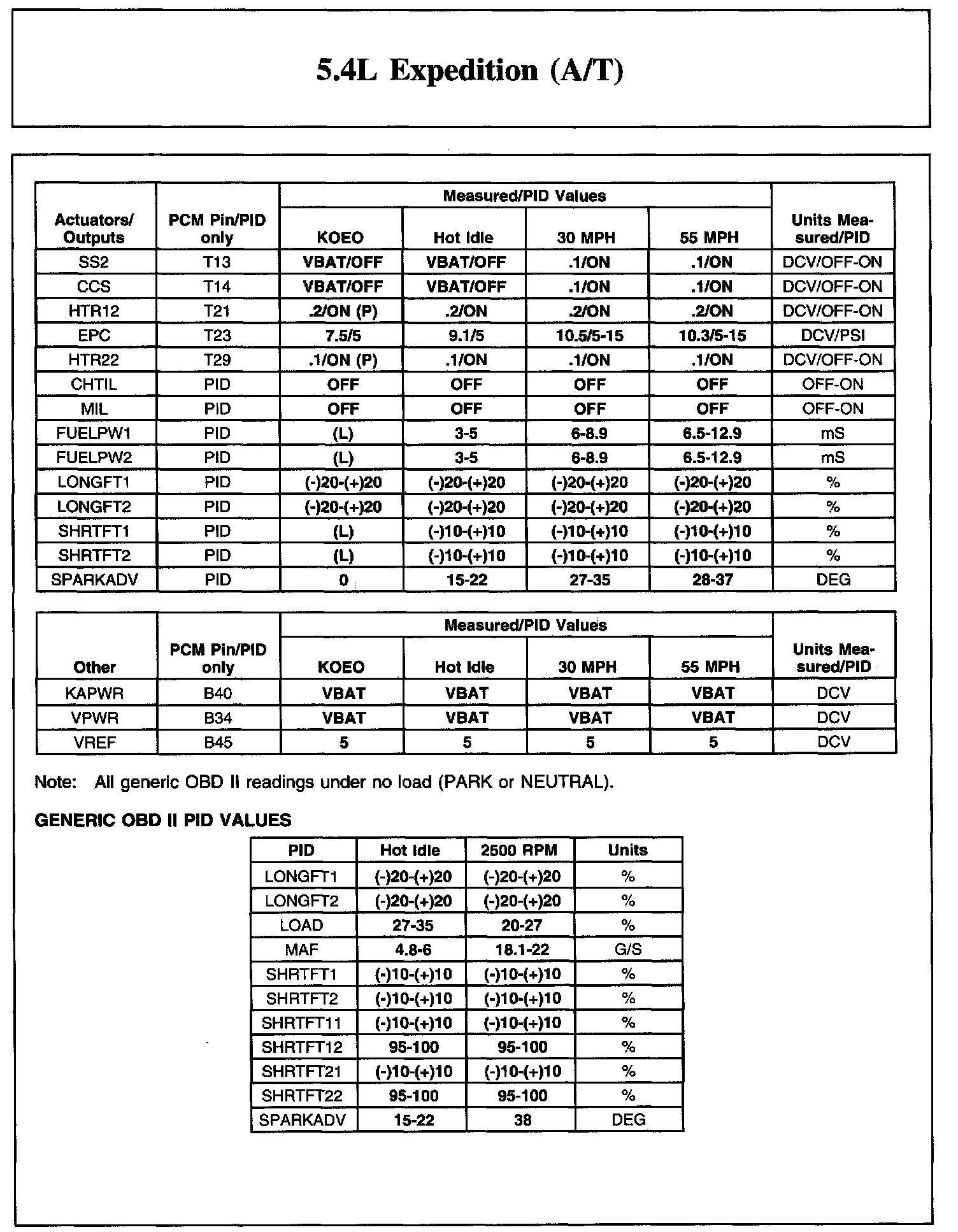 The Typical Diagnostic Reference Value Charts do not display fault PIDs. These are PIDs which indicate a hard fault with the circuit. They display a value of "YES" or "NO" and are PIDs ending with an "F".