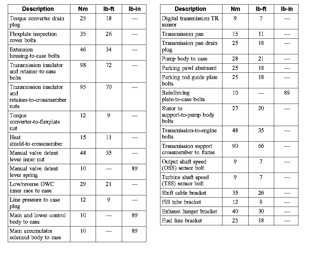 Torque Specifications