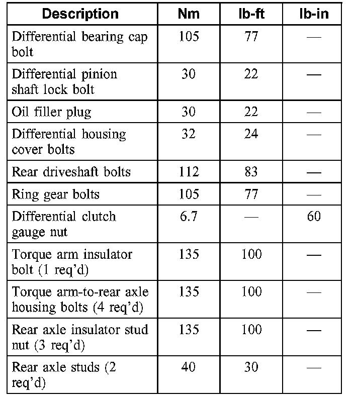 Torque Specifications