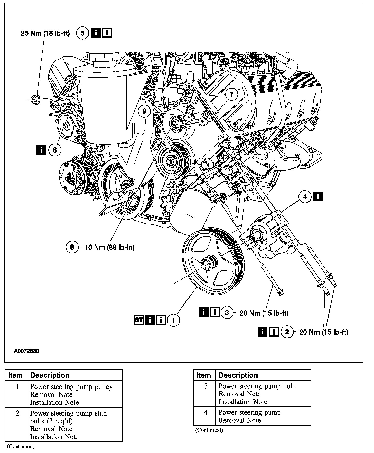 Item 2: Power Steering Pump Stud Bolts Removal Note