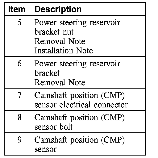 Item 6: Power Steering Reservoir Bracket Removal Note