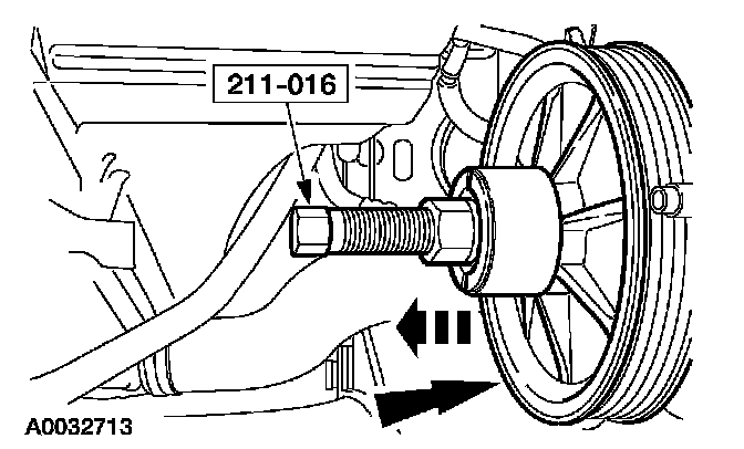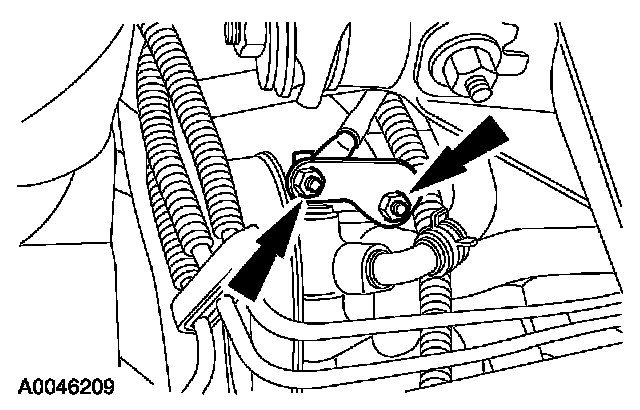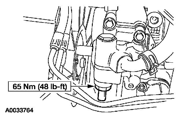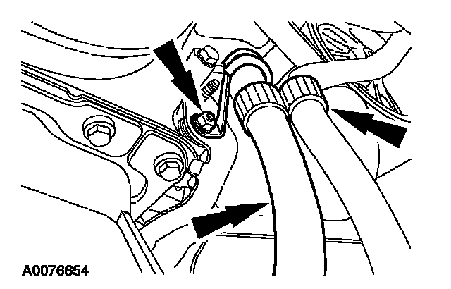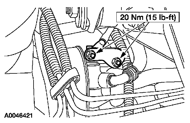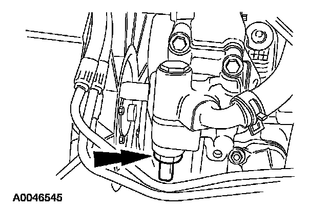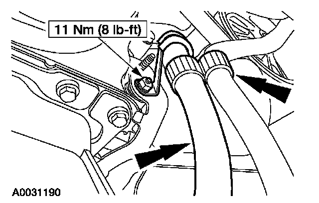 2. Disconnect the power steering high pressure tube. Remove and discard the O-ring seal.