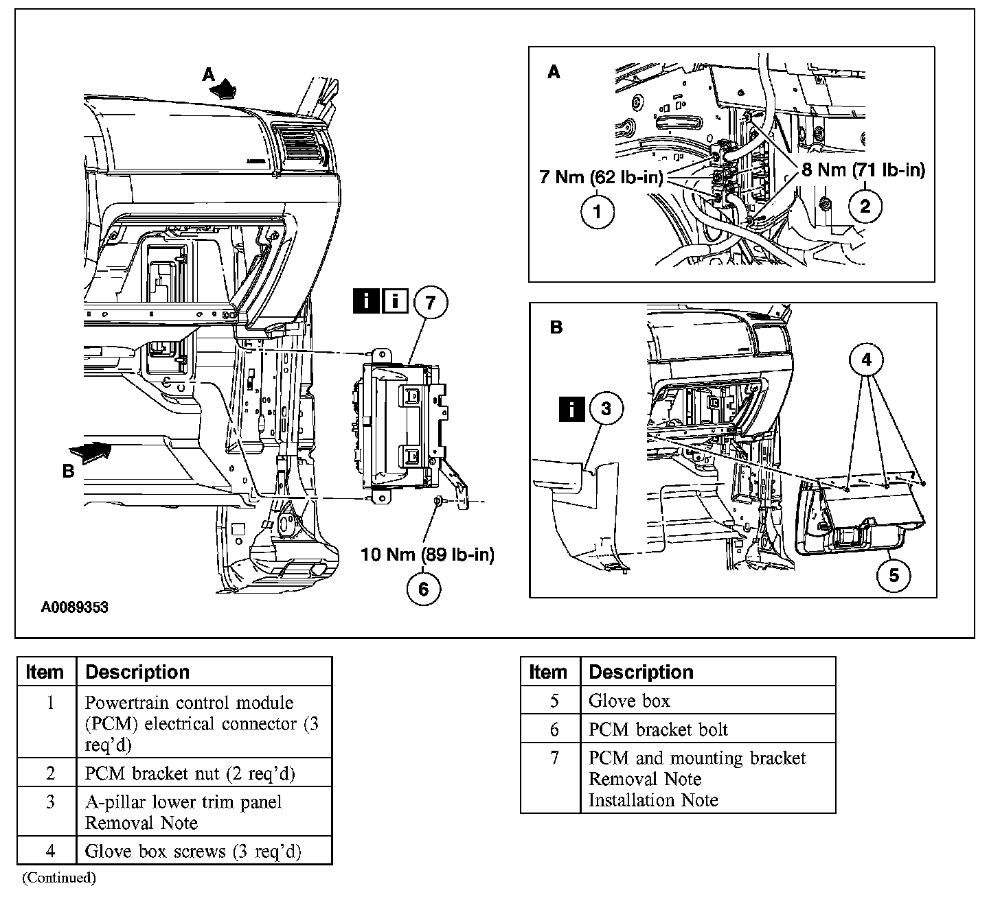 Item 7: PCM and Mounting Bracket Removal Note