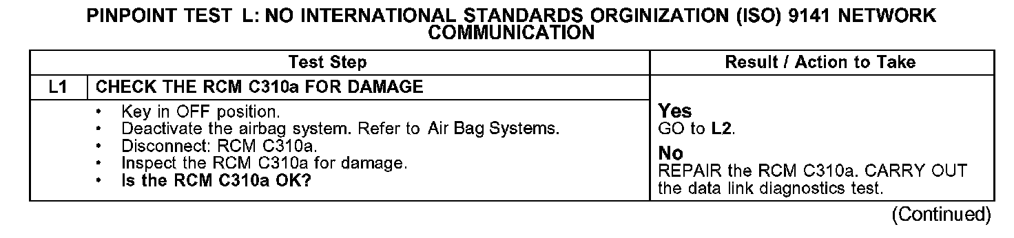 PINPOINT TEST L: NO INTERNATIONAL STANDARDS ORGANIZATION (ISO) 9141 NETWORK COMMUNICATIONTest L1: