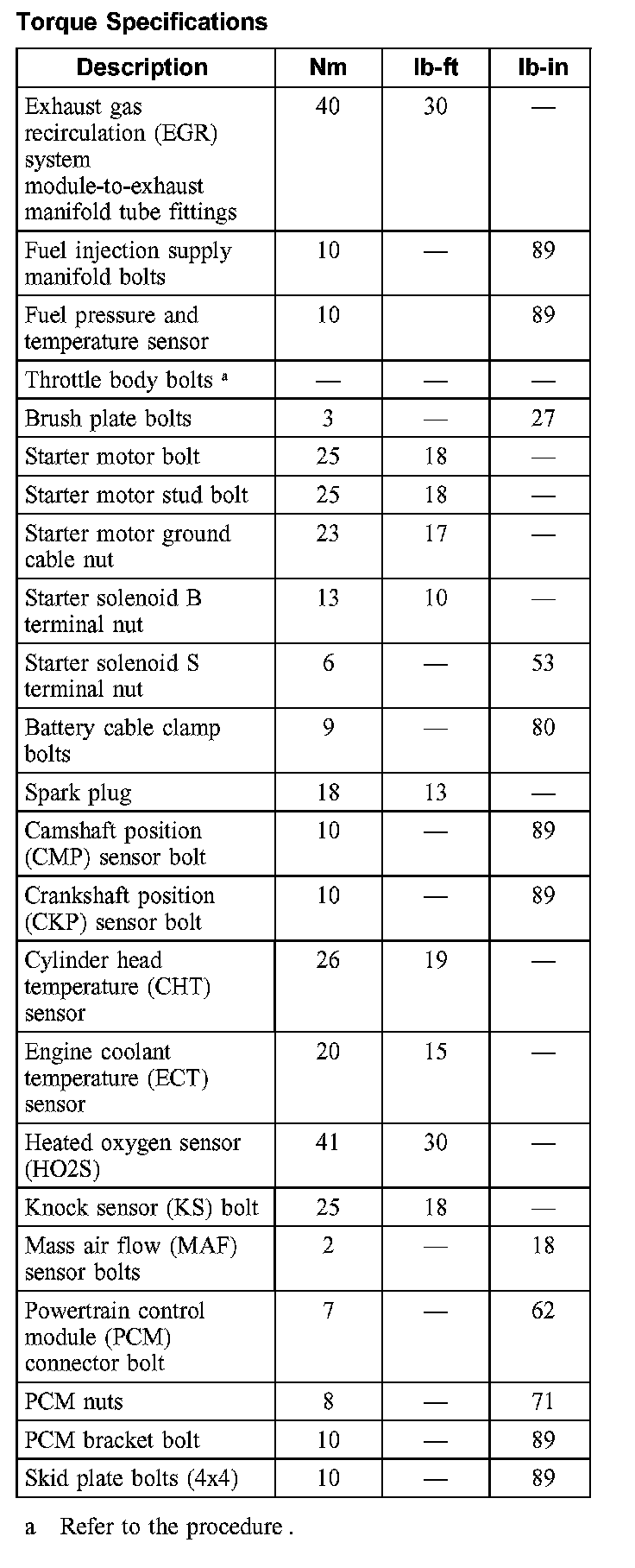 Torque Specifications: